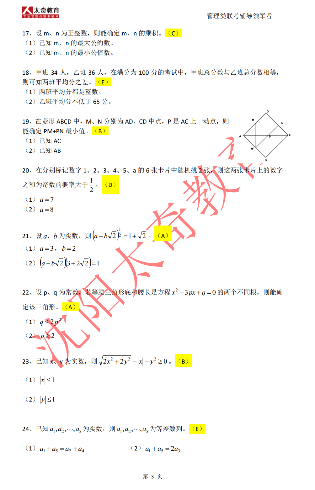 feng: 太奇的邏輯我感觸最深,聯(lián)考的真題跟??嫉目碱}有很多都是一樣的!考上清華真得很感激楊老師。
