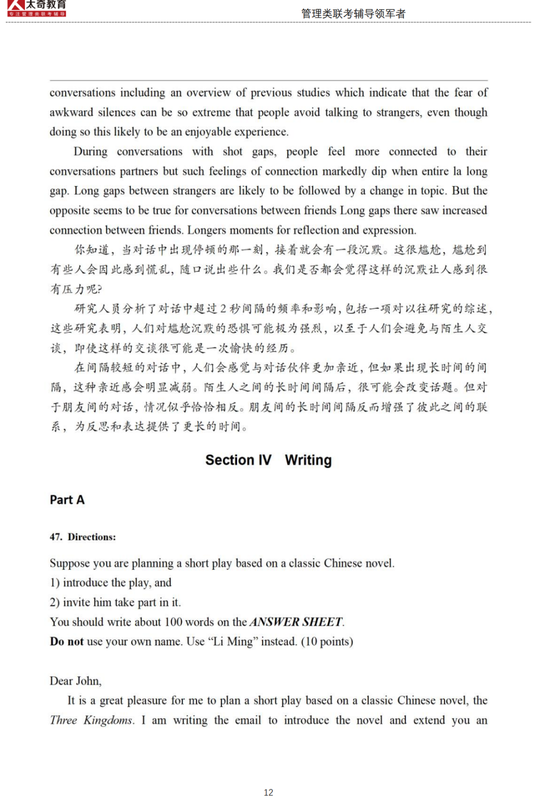feng: 太奇的邏輯我感觸最深,聯(lián)考的真題跟??嫉目碱}有很多都是一樣的!考上清華真得很感激楊老師。